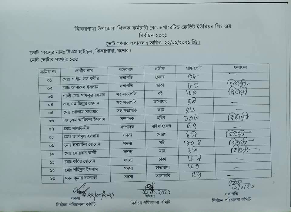 ০৩। ঝিকরগাছা শিক্ষক-কর্মচারী কো-অপারেটিভ ক্রেডিট ইউনিয়ন লিঃ এর নির্বাচন-২০২১