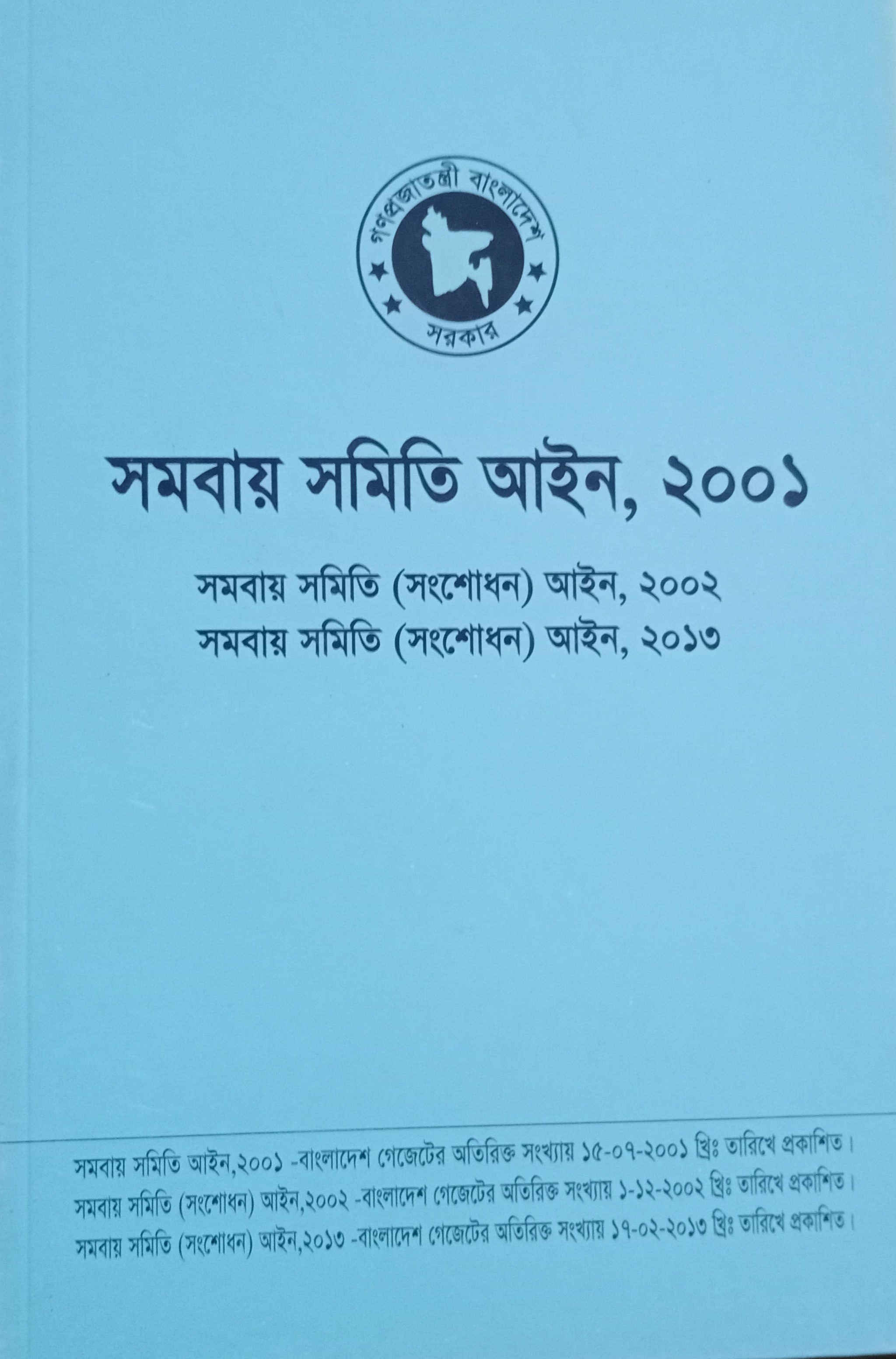 সমবায় সমিতি আইন,২০০১(সংশোধিতঃ ২০০২ ও ২০১৩)